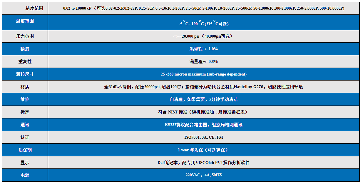 1.高壓范圍:能夠承受高壓條件下的測試需求。根據不同的應用場景,高壓粘度計可以具備不同的壓力范圍,通常可達到幾千至數萬帕斯卡(Pa)的壓力范圍。