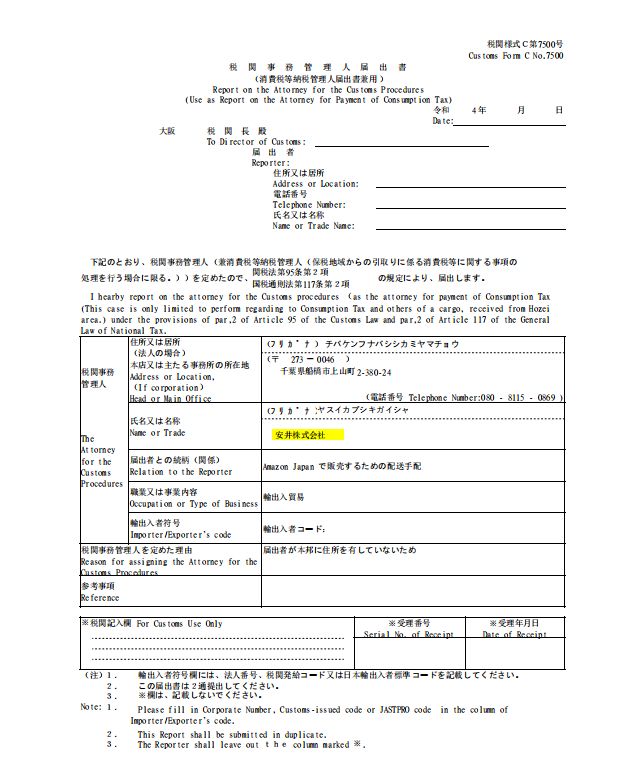 賣家應參考相關的日本法律法規, 賣家對應申請各各港口(東京,大阪,名古屋等)進行備案申請,出貨前取得進口許可證或批準。所需主要文件: